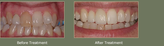 In this case existing crowns on the six upper front were replaced to provide more aesthetic restorations.